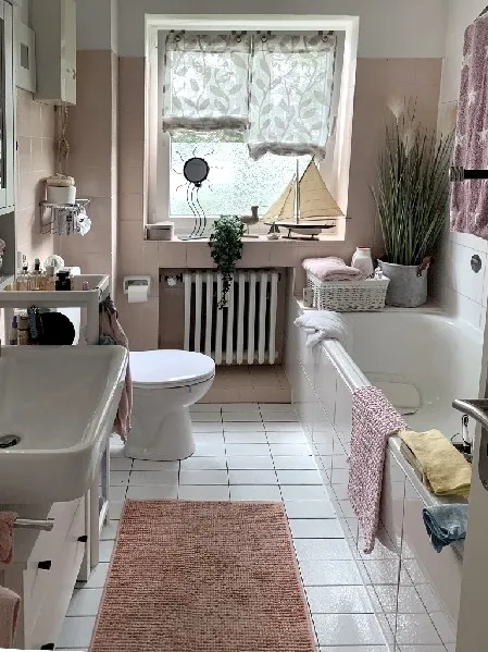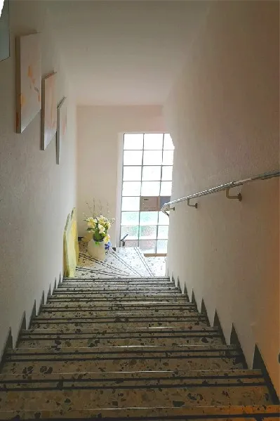 Fenster aus Kunststoff weiss mit Isolierglas, Fensterrolladen im EG, Bodentiefe Doppelglastür zur Terrasse, Kellerräume gefliest, Kellertreppe und Treppenaufgang zum Obergeschoss mit Terrazzo-Belägen, Fußböden EG und OG aus Kunststoff, Fußboden in Küche und Eingangsbereich mit Fliesen, Türen in Weißlack, SAT-Anlage, Glasbausteine im Bad (Keller), separater Ausgang vom Keller zum Garten, Gartenhäuschen, PKW-Stellplätze im Vorgarten plattiert