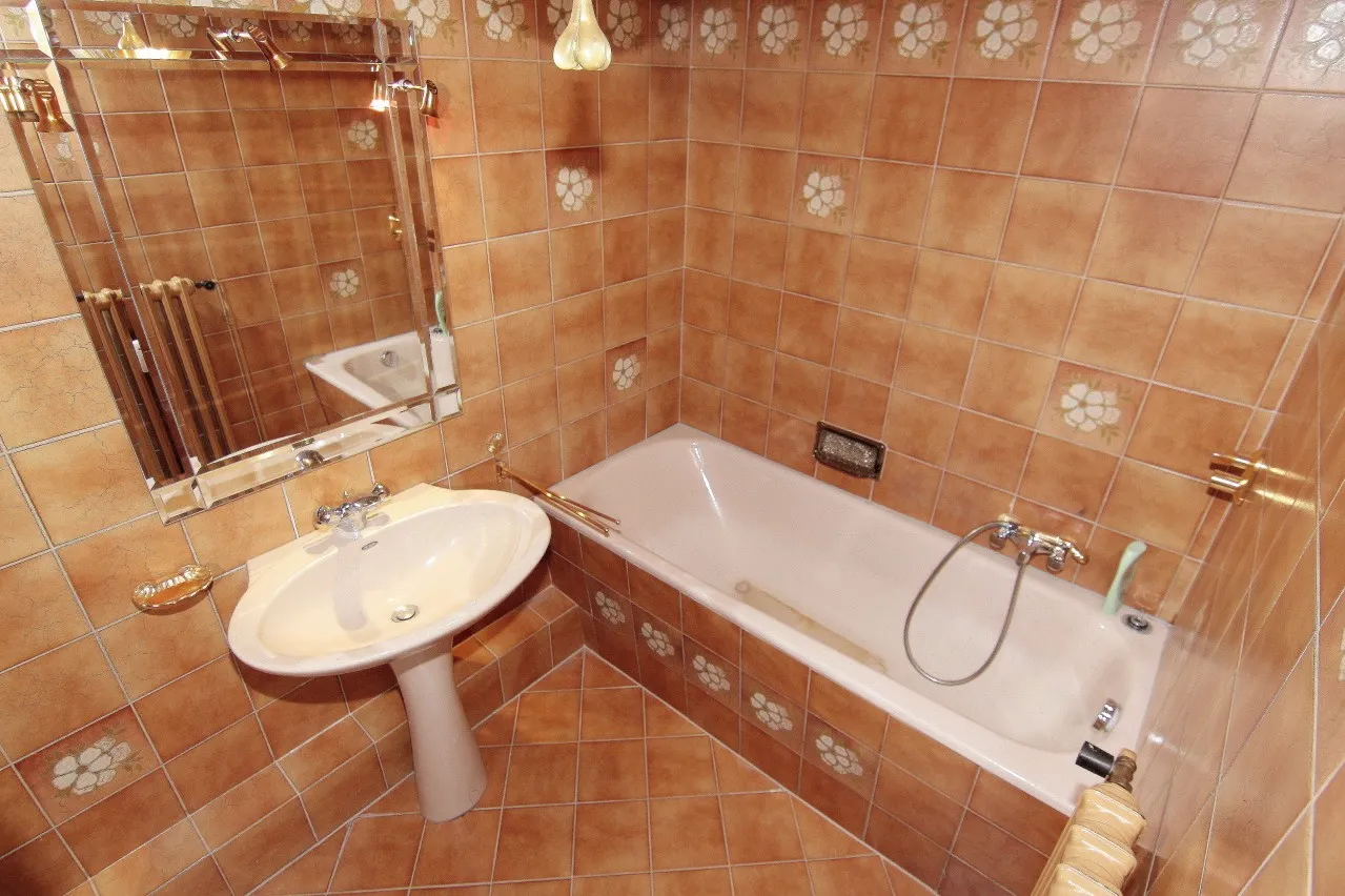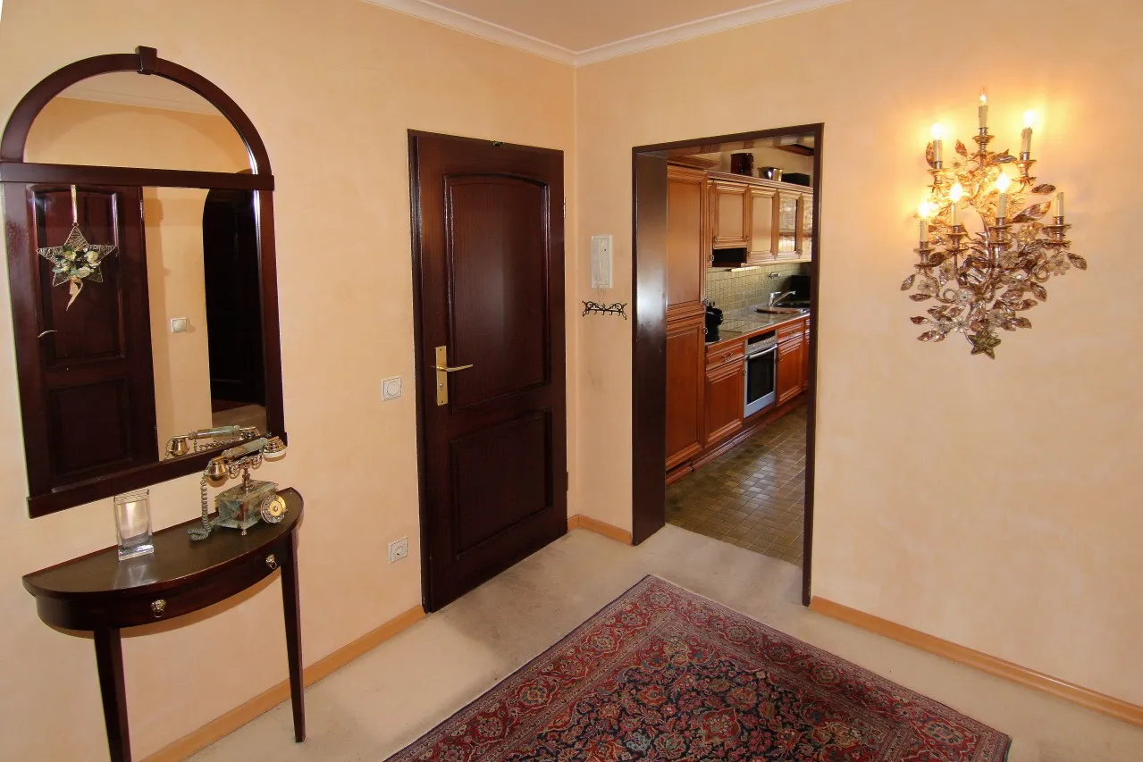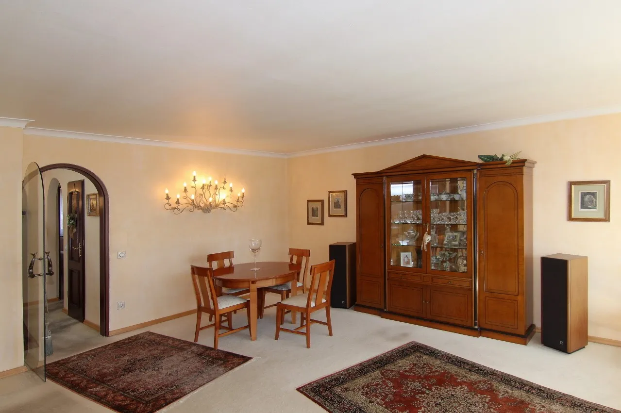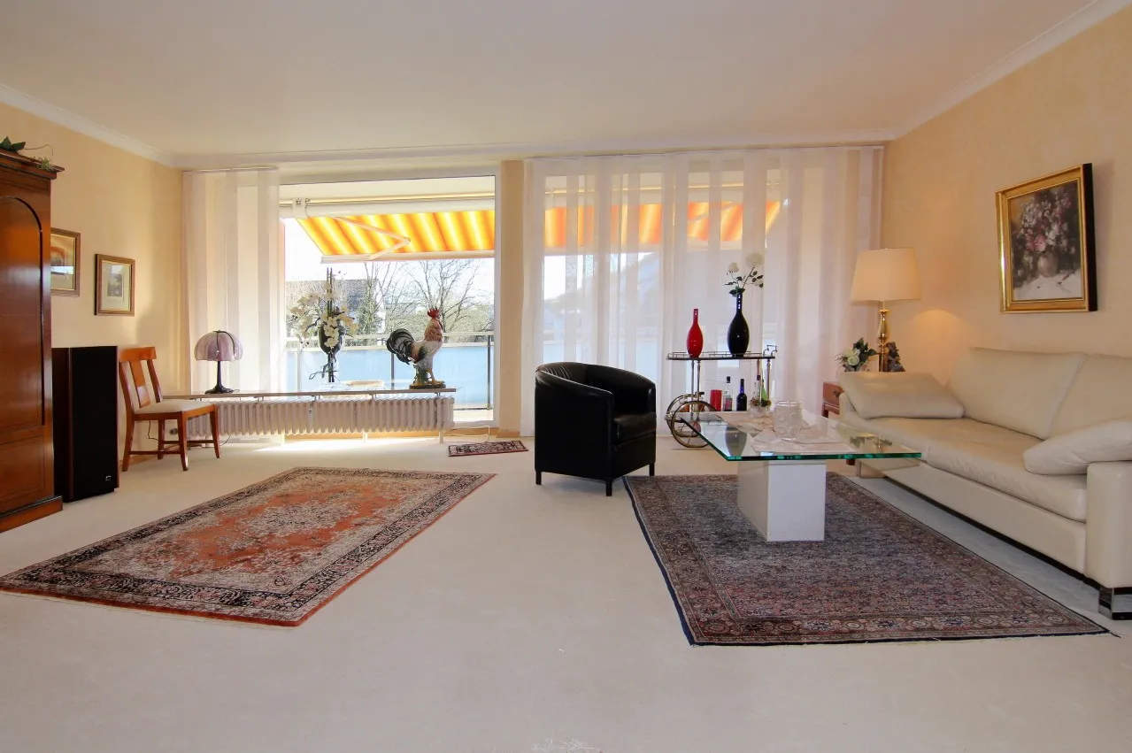 2 Zimmer, großer Sonnenbalkon mit Blick in die Gärten, alle Räume großzügig geschnitten, Aufzug, Tiefgaragenstellplatz und das in einem sehr gepflegten Wohngebiet von Duissern. Gleich beim Betreten der Wohnung befinden Sie sich in der großzügigen Diele mit einem Einbauschrank, eine Glastür zum Wohnzimmer lässt viel Licht in den Empfangsbereich, der zu den anderen Räumen wie Küche, Bad, Gäste-WC und Schlafzimmer führt. Kleine Besonderheiten wie weiße Zierleisten an den Decken des Wohnzimmers, die bodentiefen Fenster und die Schiebetür zum Balkon bieten Licht und Helligkeit. Der Balkon verfügt über eine große Sonnenmarkise. Die farbigen Fliesen im Bad entsprechen nicht mehr ganz den heutigen Vorstellungen, das Bad ist mit einem Wannenbad ausgestattet und hat Platz für eine Waschmaschine, falls man den Waschraum im Keller nicht nutzen möchte. Das Gäste-WC ist mit hellen Fliesen ausgestattet. Ein großes Schlafzimmer bietet viel Platz für Schrank, Bett und Kommoden. Von der Wohnung aus erreichen Sie mit dem Fahrstuhl direkt die Tiefgarage und den Keller und den Kellerausgang zum Garten.