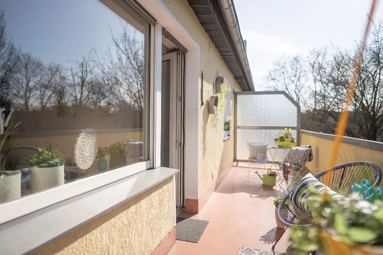 Zum Verkauf steht eine renovierte 2 Zimmer Wohnung, mit großem Einbauschrank im Schlafzimmer, Bad mit Badewanne und Fenster und großen Sonnenbalkon im Herzen von Duisburg Laar. Die Wohnung befindet sich in der 3. Etage in gesuchter Wohnlage von Duisburg Laar. Die Rheinwiesen sind nach nur wenigen Gehminuten erreicht. Über die geräumige Diele gelangt man in die Küche, zum Abstellraum, ins Wohnzimmer mit dem großen Balkon, in das helle Bad mit Badewanne, sowie in das Schlafzimmer. Der im Schlafzimmer integrierte Einbauschrank bietet viel Stauraum. Im Wohnzimmer sowie im Schlafzimmer wurde Laminat verlegt, in den anderen Räumen Fliesenboden. Zur Wohnung gehört außerdem ein Kellerraum. Ebenso befindet sich eine Fahrradabstellmöglichkeit sowie ein Wasch- und Trockenraum im Keller.